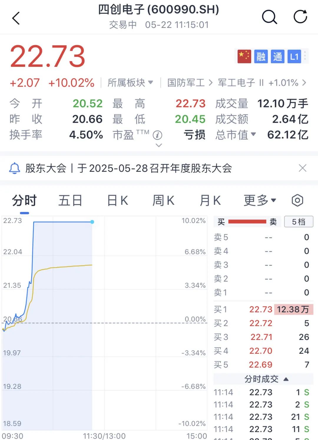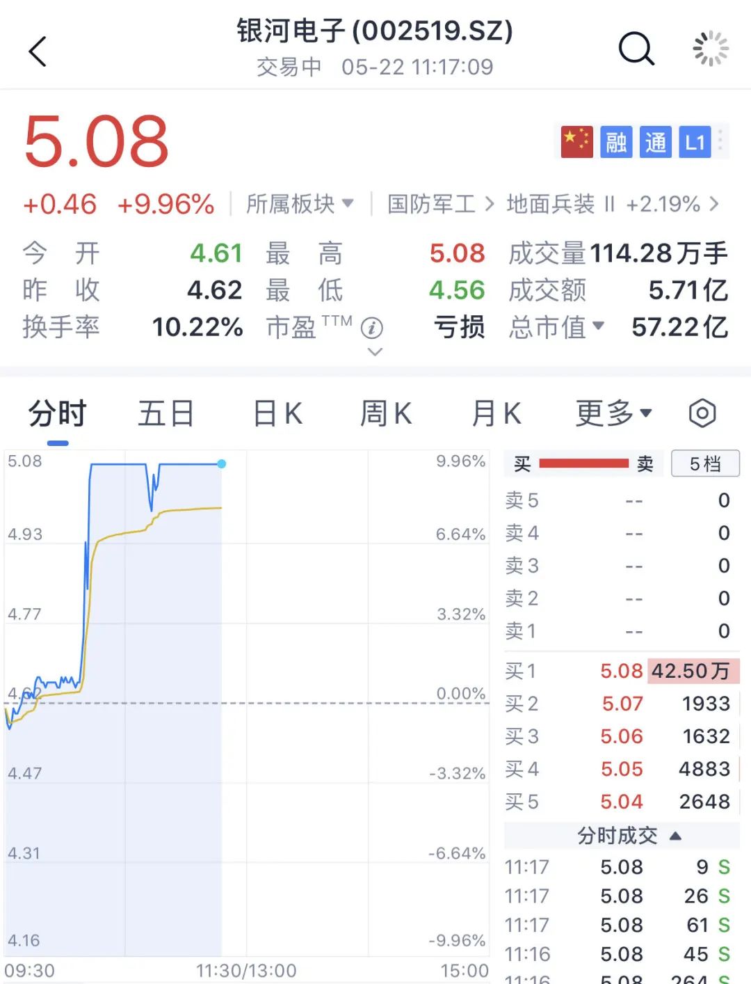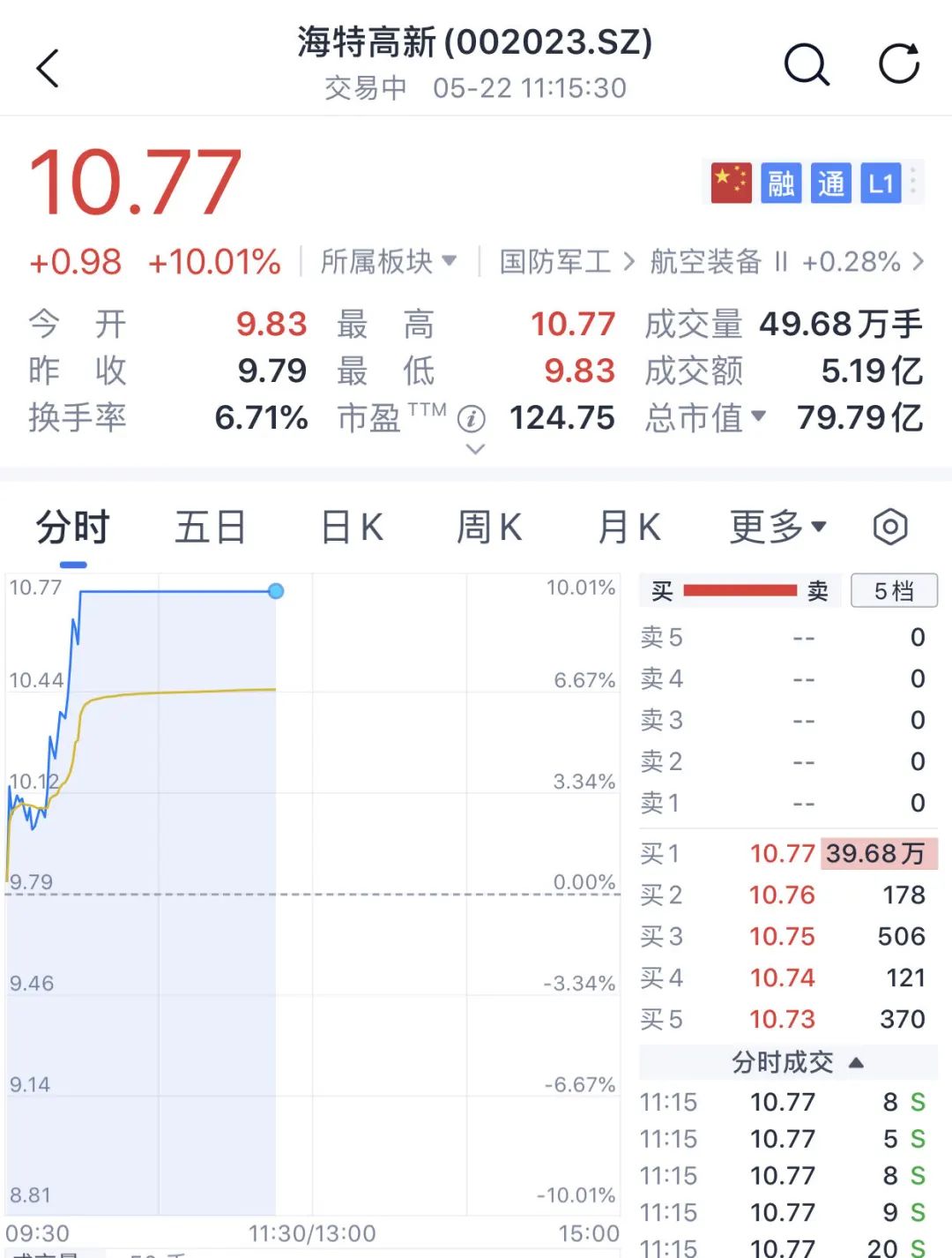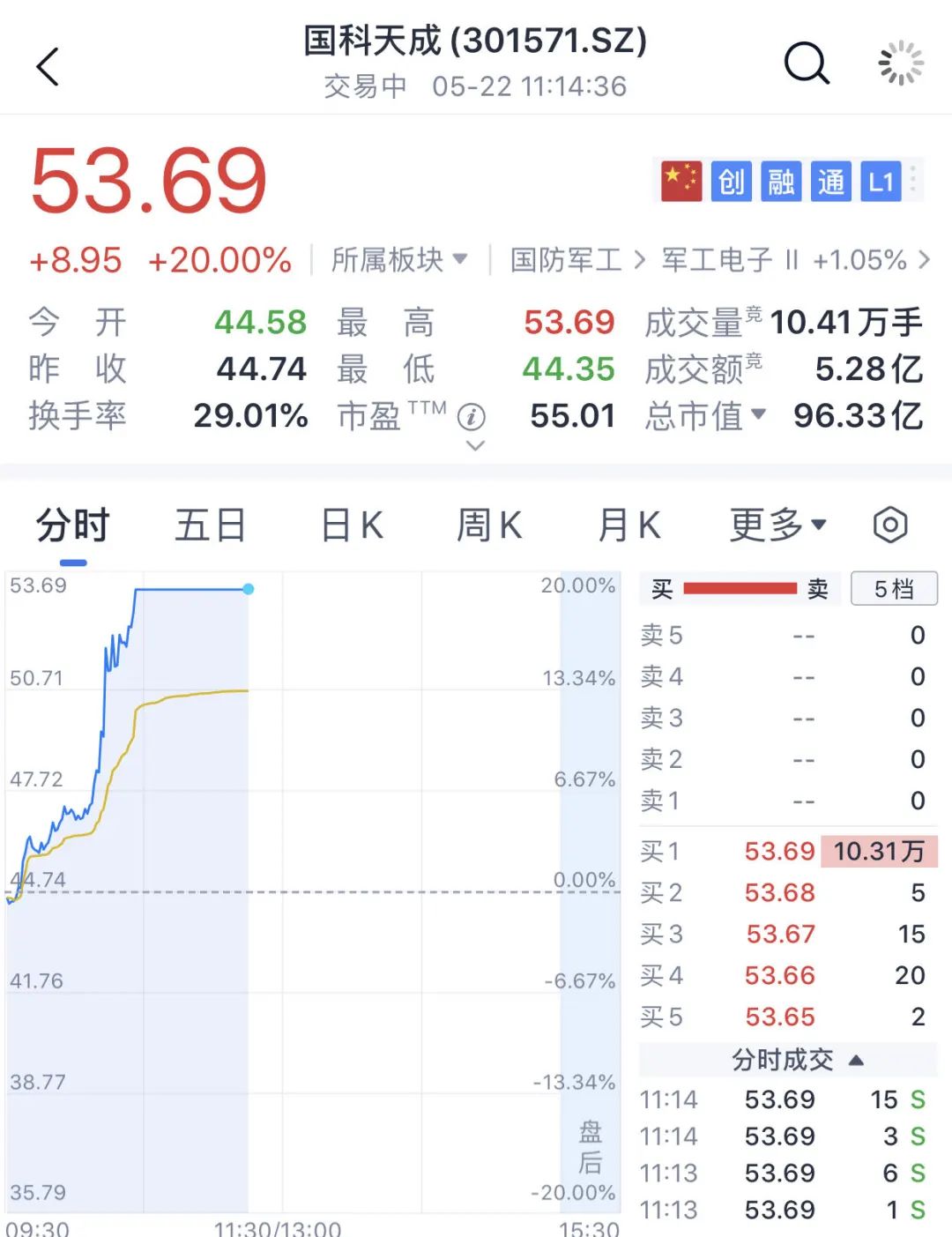 国防军工板块今日早盘表现比较活跃,盘中个股集体拉升,截至发稿,国科天成20%涨停,四创电子、海特高新、国睿科技、银河电子等多股亦涨停。
