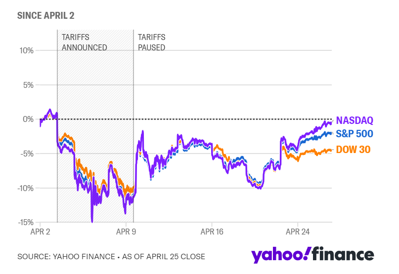 在主要股指基本收复4月2日关税声明发布前的失地后,市场将迎来经济数据与企业财报密集发布的一周。