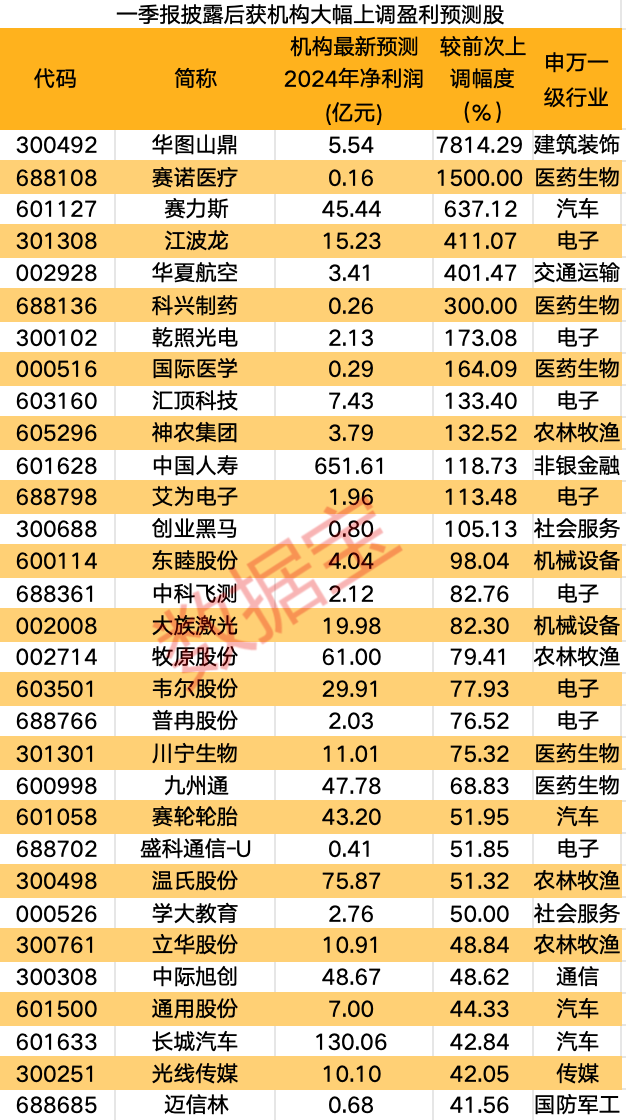 一季报披露完毕!这些股获机构大幅上调全年业绩预测