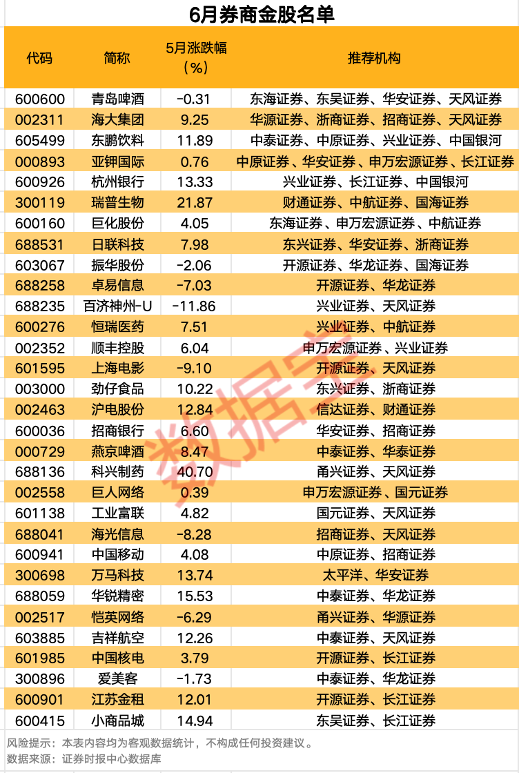 6月券商金股名单出炉