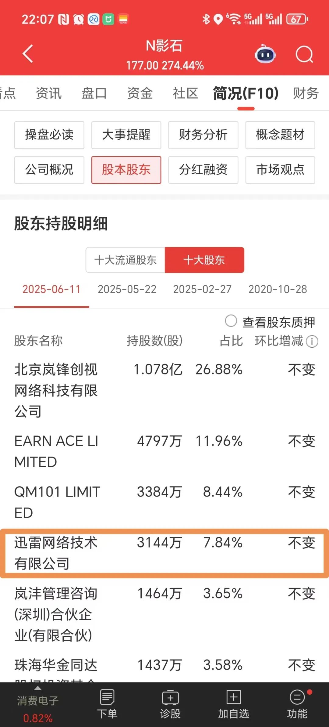 迅雷持有影石创新3144万股,持股比例为7.84%,是重要股东,按最新股价持股市值达到55.65亿元。