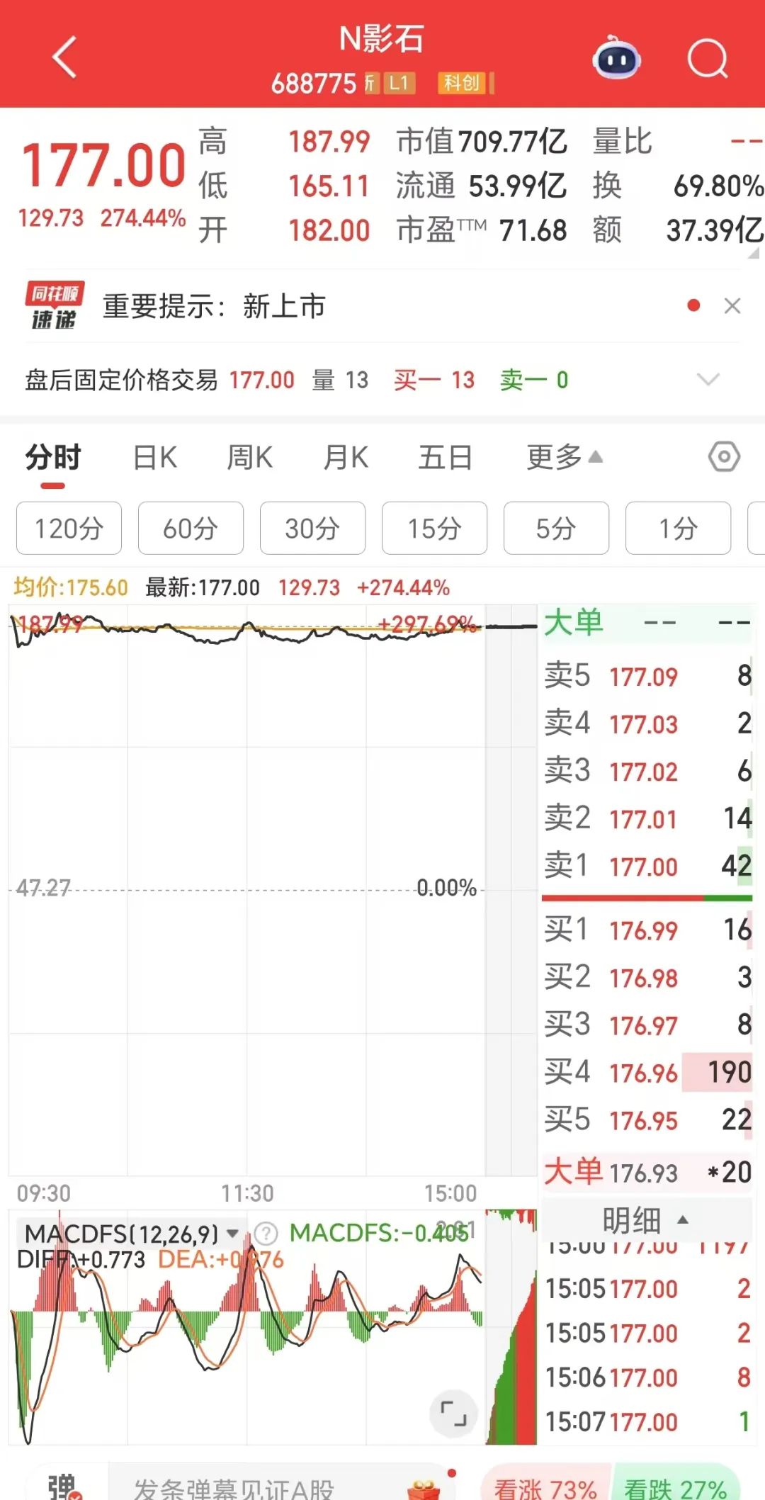 周三上午,“全景相机龙头”影石创新登陆A股科创板,开盘价182元/股,相比发行价大涨285%。收盘影石创新的股价为177元/股,市值接近710亿元。