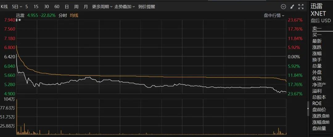 周三,美股中概股迅雷开盘后股价大幅下挫,收盘跌近23%,市值3.09亿美元。该市值还不到其持有的影石创新市值一半。