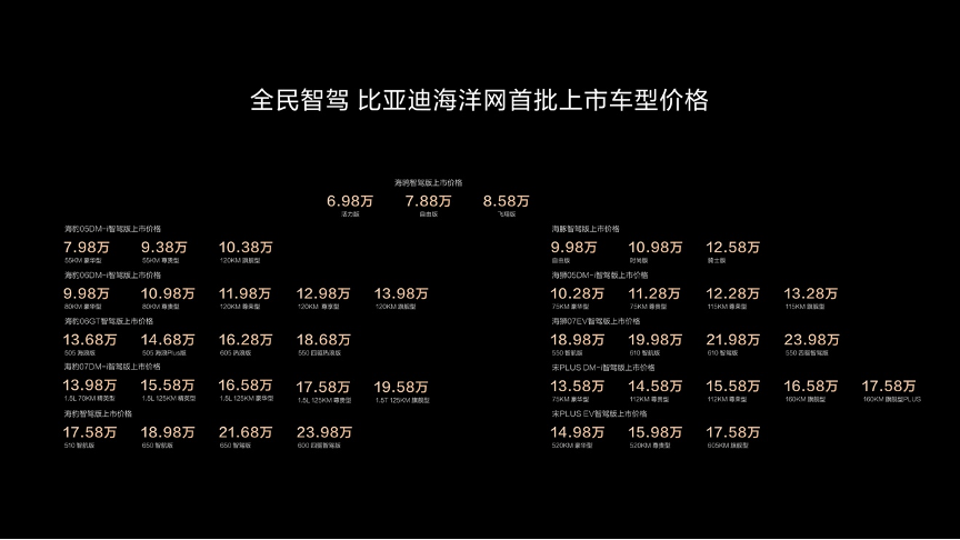 一直以来,智能驾驶技术主要集中应用于部分高端车型,消费者体验的价格门槛高。而此次比亚迪发布的智驾车型覆盖了王朝、海洋等多个系列,将高速智能领航驾驶(高速NOA)车型的价格拉低到了7万元级。