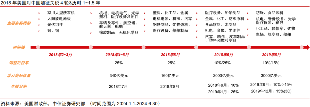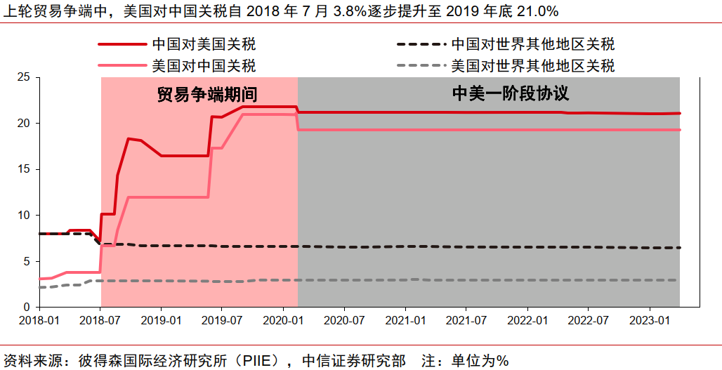 从幅度看,具有替代产能的价格敏感型产品更易受影响。2018年中美贸易摩擦,加税共分4轮&历时1~1.5年,美国对中国平均关税税率自2018年7月3.8%逐步提升至2019年年底21.0%左右。