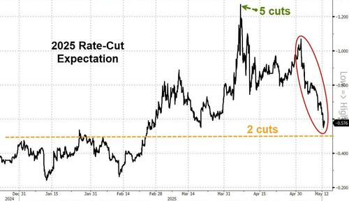 要知道,就在上月,利率市场还一度完全定价了年内四次降息的预期——当时市场普遍预期美联储将在6月重启宽松周期,因担忧贸易战可能冲垮美国经济。