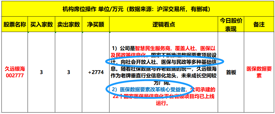 社保数据商业化龙头久远银海,它的第一次异动扑捉是在3月13日龙虎榜,当日久远银海机构净买入2774万元;当时梳理的逻辑就有2个核心点:①向社会开放人社、医保与民政等多种基础信息。②医保数据要素改革核心受益者。