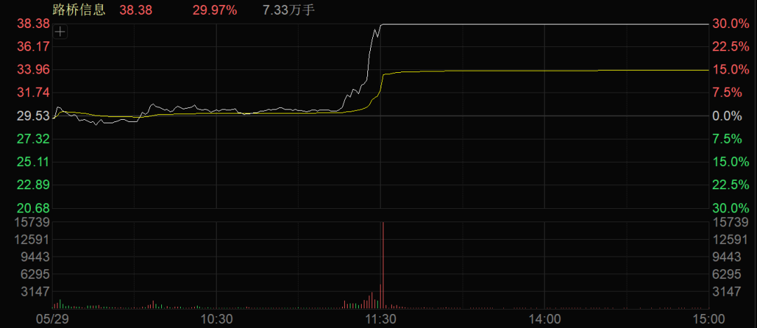 人工智能今日掀涨停潮,路桥信息30%涨停,广立微、朗新集团、万马科技等批量20cm封板,通达电气7日6涨停,劲旅环境、京北方、音飞储存、启明信息等逾40股涨停或涨超10%。