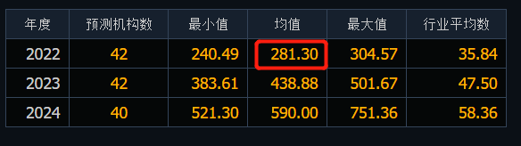 截至1月12日收盘,6个月以内共有42家机构对宁德时代的2022年度业绩作出预测,其中归母净利预估均值为281.30亿元。晚间公布的年报预测值291亿元-315亿元,高于机构预估均值。