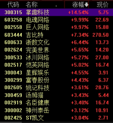 6月3日,游戏板块早盘强势拉升,截至发稿,巨人网络、电魂网络涨停,掌趣科技涨超14%,浙数文化、完美世界、吉比特等跟涨。