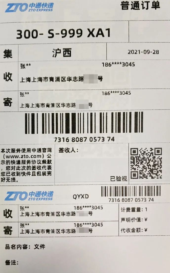 早在2021年10月,中通快递正式为全部自有渠道下单客户默认免费提供隐私面单服务。通过中通快递寄件小程序、手机端、官网打印出的面单将会默认隐藏收件人及寄件人电话号码。