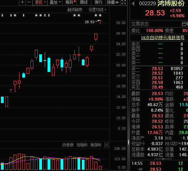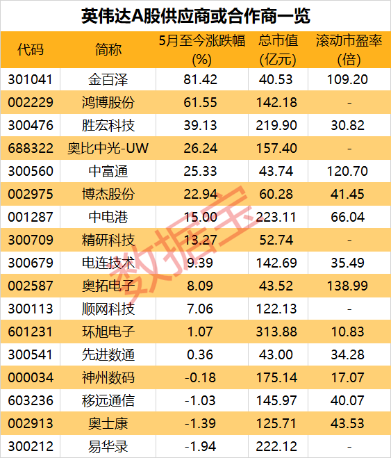 英伟达的大涨也带动A股相关概念股猛涨,金百泽连续3个交易日20cm涨停,鸿博股份连续3个交易日10%涨停,胜宏科技近两日大涨超27%,精研科技近3个交易日暴涨28%。