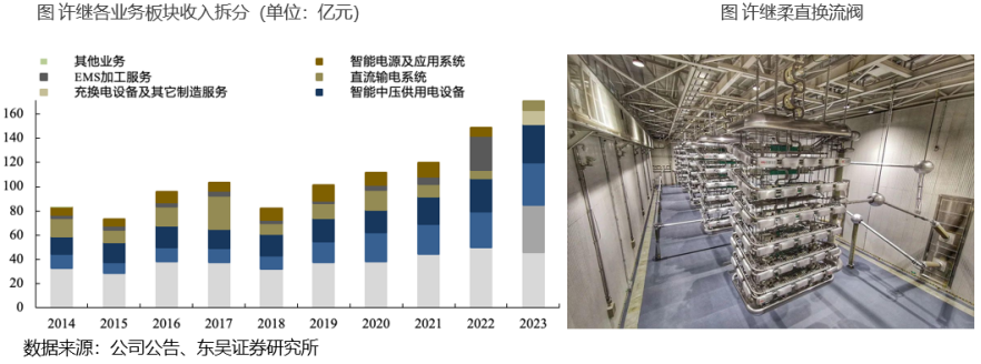 许继电气:公司是直流换流阀和直流控保的核心供应商,柔直换流阀的份额有望持续提升,随着柔直项目的放量,公司的业绩弹性最大。传统主业稳健发展,产品覆盖各环节。公司覆盖“发输变配用”各环节的、覆盖一次和二次装备、交流及直流装备的电力装备制造商及系统解决方案提供商。