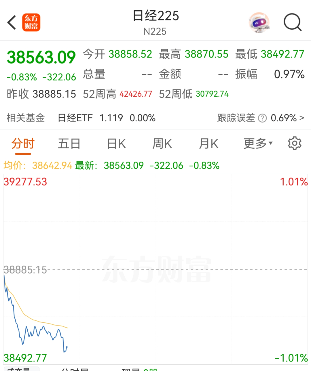韩国股市则高开低走,韩国综合指数盘中一度上涨0.8%,不过随后大幅跳水并翻绿,跌幅一度达到0.60%。截至券商中国记者发稿,日经225指数下跌0.83%,韩国综合指数下跌0.31%。