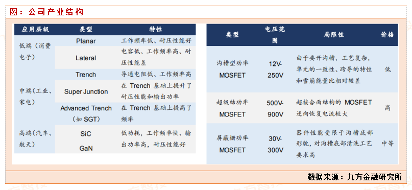 新洁能公司是国内技术领先的功率器件Fabless企业,MOSFET工艺成熟、型号齐全。公司是国内率先同时拥有沟槽型、超级结、屏蔽栅MOSFET及IGBT四大产品平台的企业。公司芯片代工主要来源于华虹宏力等国内外领先的芯片代工企业,封装测试主要采购子公司电基集成、日月光(ASX.US)、长电科技(600584)、捷敏电子等封装测试企业。