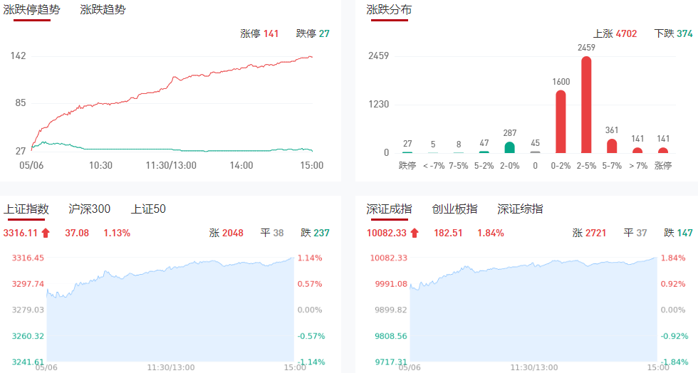 A股五月开门红:创业板指大涨近2% 全市场近5000股上涨
