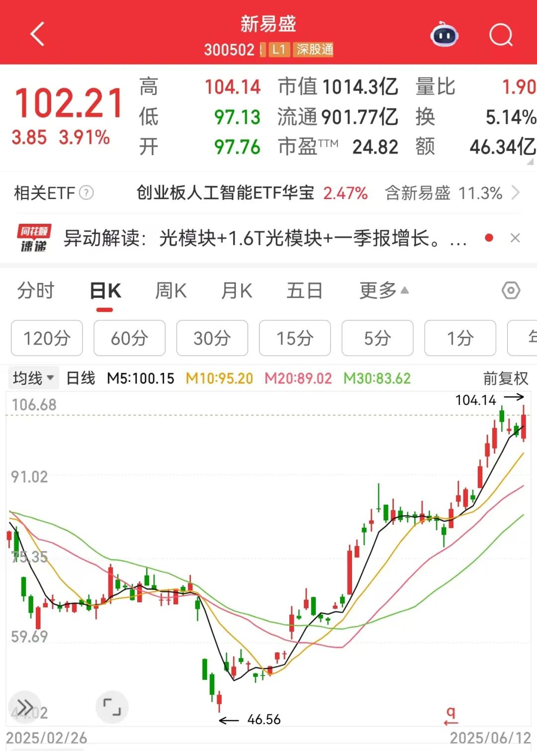一批科技股反弹也异常凶猛,新易盛短短两个月从50元下方飙升至100元上方;仕佳光子同样在两个多月时间从13元下方涨至今天上午最高36元上方。