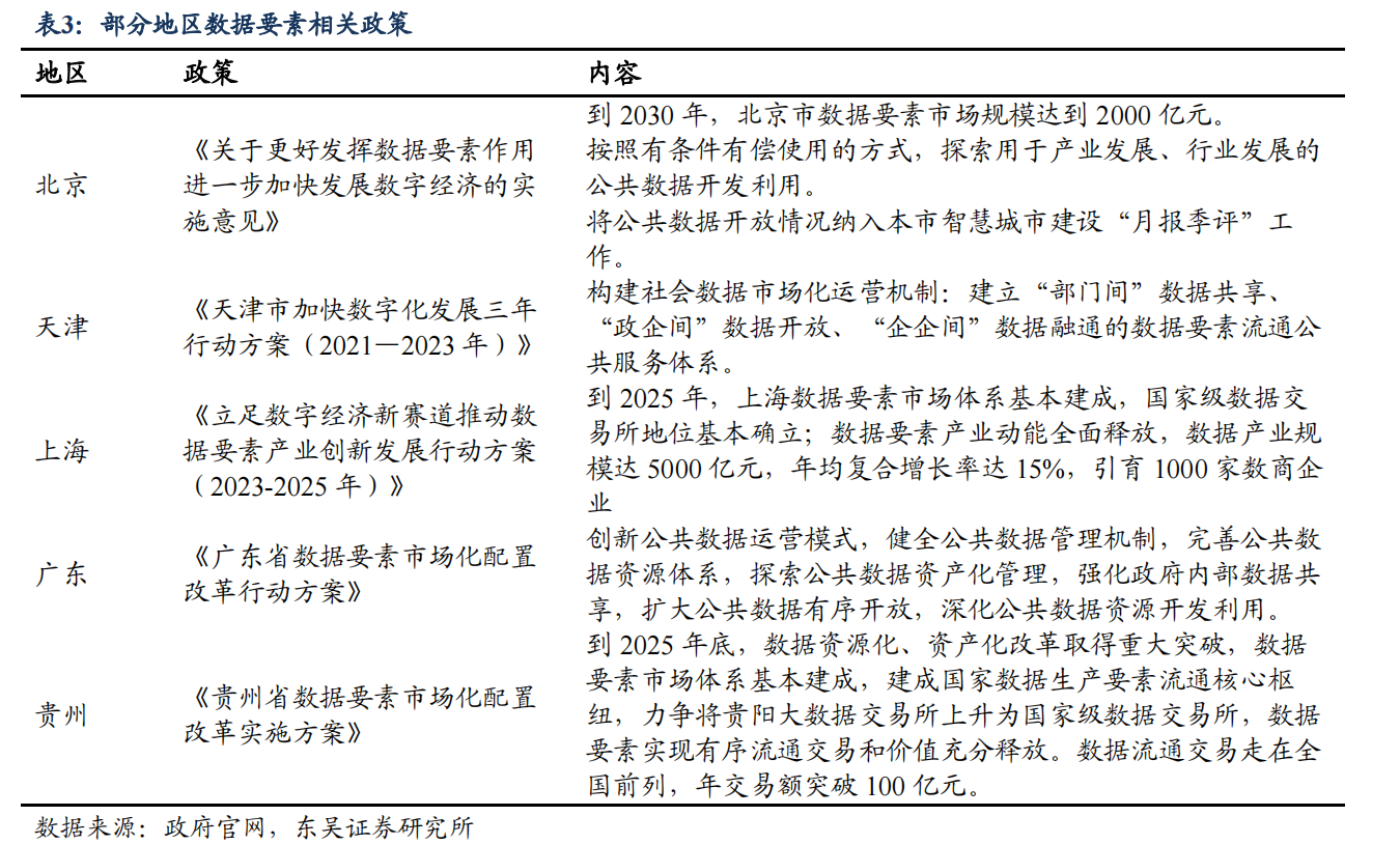 相比于土地,数据取之不尽用之不竭,可以源源不断的为政府带来新的收入,并提高社会治理水平。因此为政府提供公共数据运营服务的企业具有很大的想象空间。地方加强数据要素建设考核,纳入财政收入。