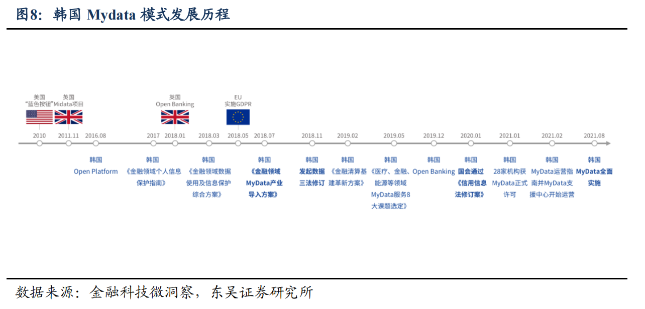 韩国数据要素放开主要基于Mydata模式和思想。Mydata强调人们自己可以使用、管理和授予有关他们收集的数据的权限,目前Mydata模式在韩国的金融、征信、公共事业等领域得到广泛应用。