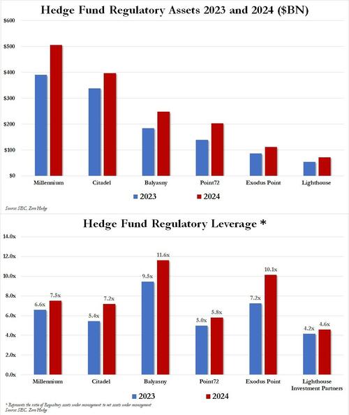 目前,虽然规模高达万亿美元,但美债基差交易的主要头寸其实集中在不到10家对冲基金手中,以千禧年(Millennium)、城堡(Citadel)、Balyasny、Poin72、ExodusPoint和Lighthouse为代表。业内预计它们的平均杠杆倍数为20倍。这也意味着只要相关基差交易损失达到5%,它们就可能将全军覆没,不得不追加保证金。