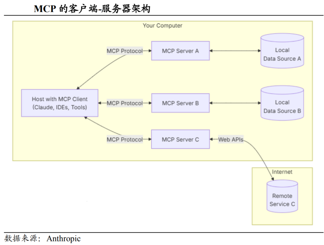 加速商业化落地:MCP的推广加速了AI智能体从开发到商业化的进程,多家互联网巨头通过支持MCP,引入生态伙伴,共同推动AI Agent产业迈向新纪元。
