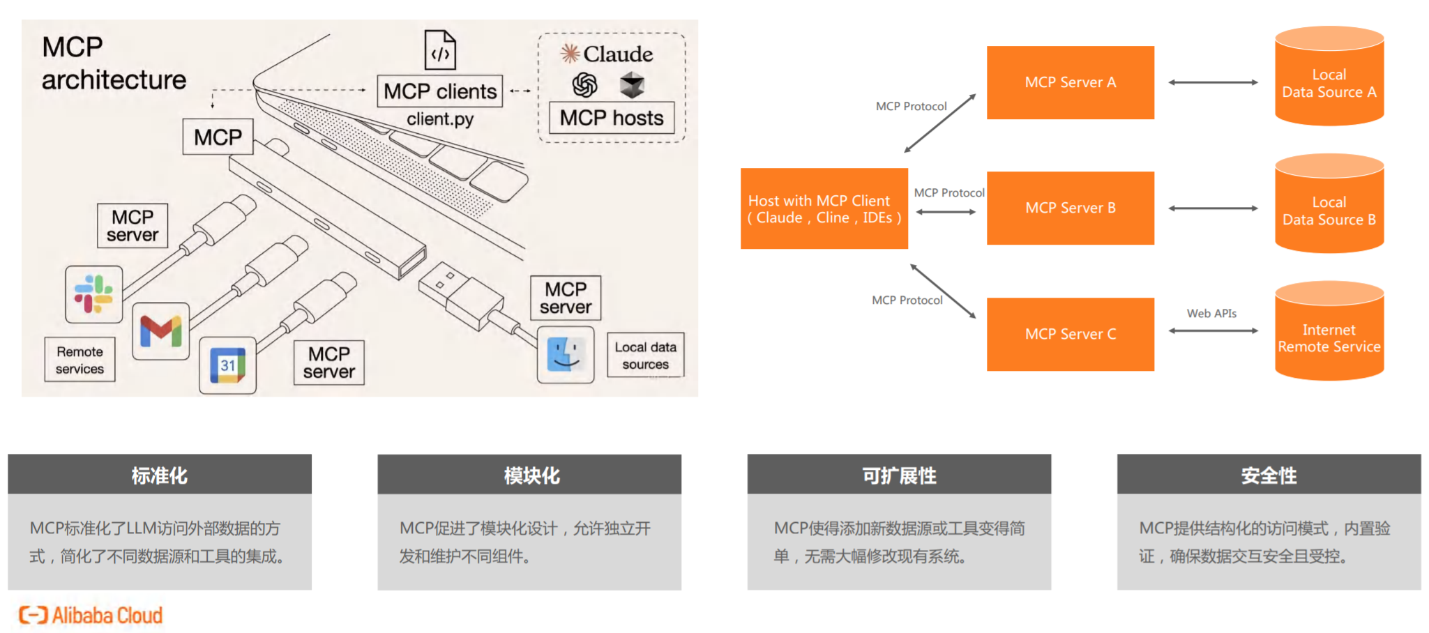标准化接口:MCP作为“万能插座”,使各种需求通过标准化接口实现即插即用,显著提升AI智能体开发效率。