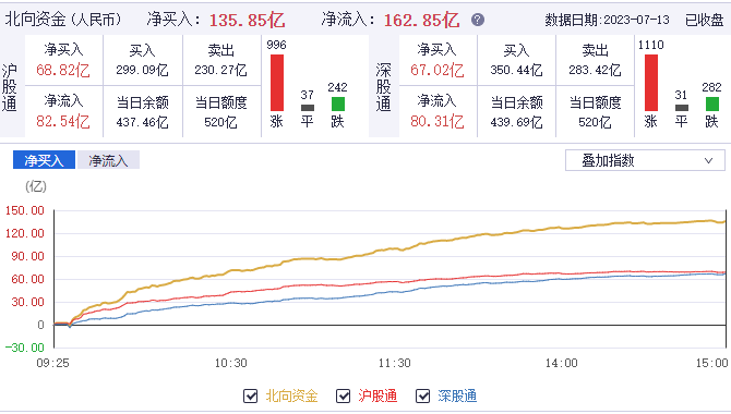 同时,资金层面来看,北上资金在今天也是大规模进入A股,日内轻松净买超百亿。而在此之前的一个月内,少有大规模流入的状态。