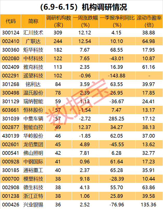 数据宝统计显示,近一周机构调研的上市公司中,中集车辆、大元泵业、博汇股份、吉林敖东等个股一季报净利同比增长超100%且滚动市盈率低于20倍。其中科华生物、吉林敖东等个股市盈率不足10倍。