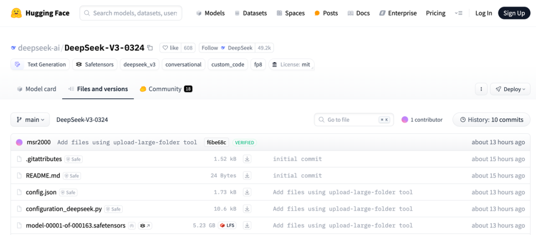 三是采用了更宽松的开源协议。DeepSeek延续了其一贯的开源传统,而且让开源社区更为兴奋的是,新版模型的开源许可与R1一样,也更新变成了MIT开源许可,比初代V3有更宽松的开源使用条件。MIT开源许可协议以商业友好著称,意味着研究人员和开发者可以自由下载、修改和部署模型,甚至可与专有软件集成。