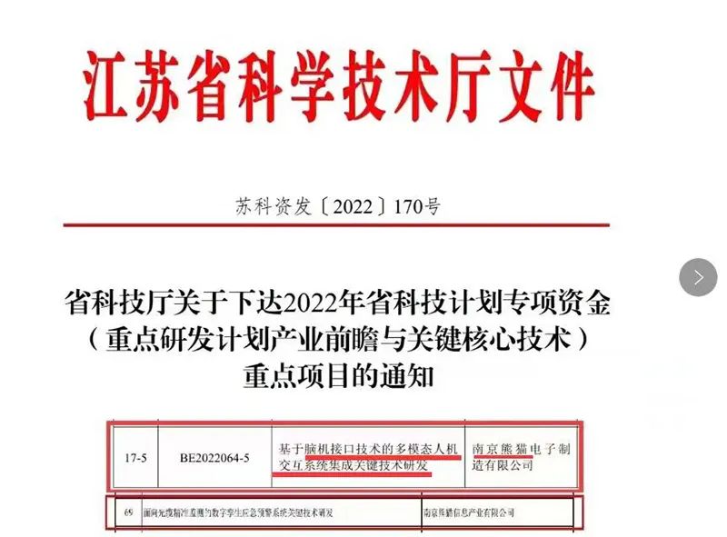 南京熊猫在2022年年报中披露,公司数字产业研究院的“面向光缆精准监测的数字孪生应急预警系统关键技术研发”项目和电子制造公司的“基于脑机接口技术的多模态人机交互系统集成研发项目”分别获批江苏省重点研发计划(产业前瞻与关键核心技术)。