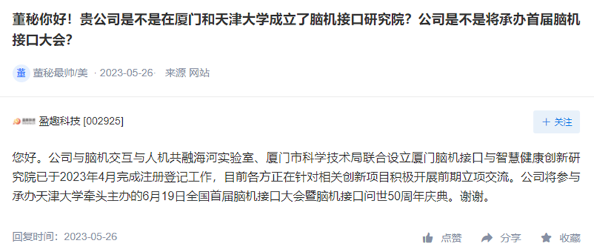 回应投资者关切,多家上市公司近期在互动易也披露了其布局脑机接口的相关进展。