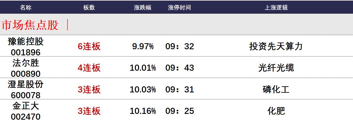 板块方面,受豫能控股秒板影响,AI相关科技板块表现强势,算力相关的华胜天成、泰嘉股份均是4天2板,字节算力核心股润泽科技涨超17%,光纤光缆的法尔胜晋级4连板,通鼎互联3天2板,PCB概念的深南电路3天2板,发电机概念的天润工业3天2板;顺周期板块虽出现震荡调整,但板块活口依然强势,化工板块的金正大和澄星股份均轻松晋级3板,有色金属概念的章源钨业和云南诸业均晋级2板。