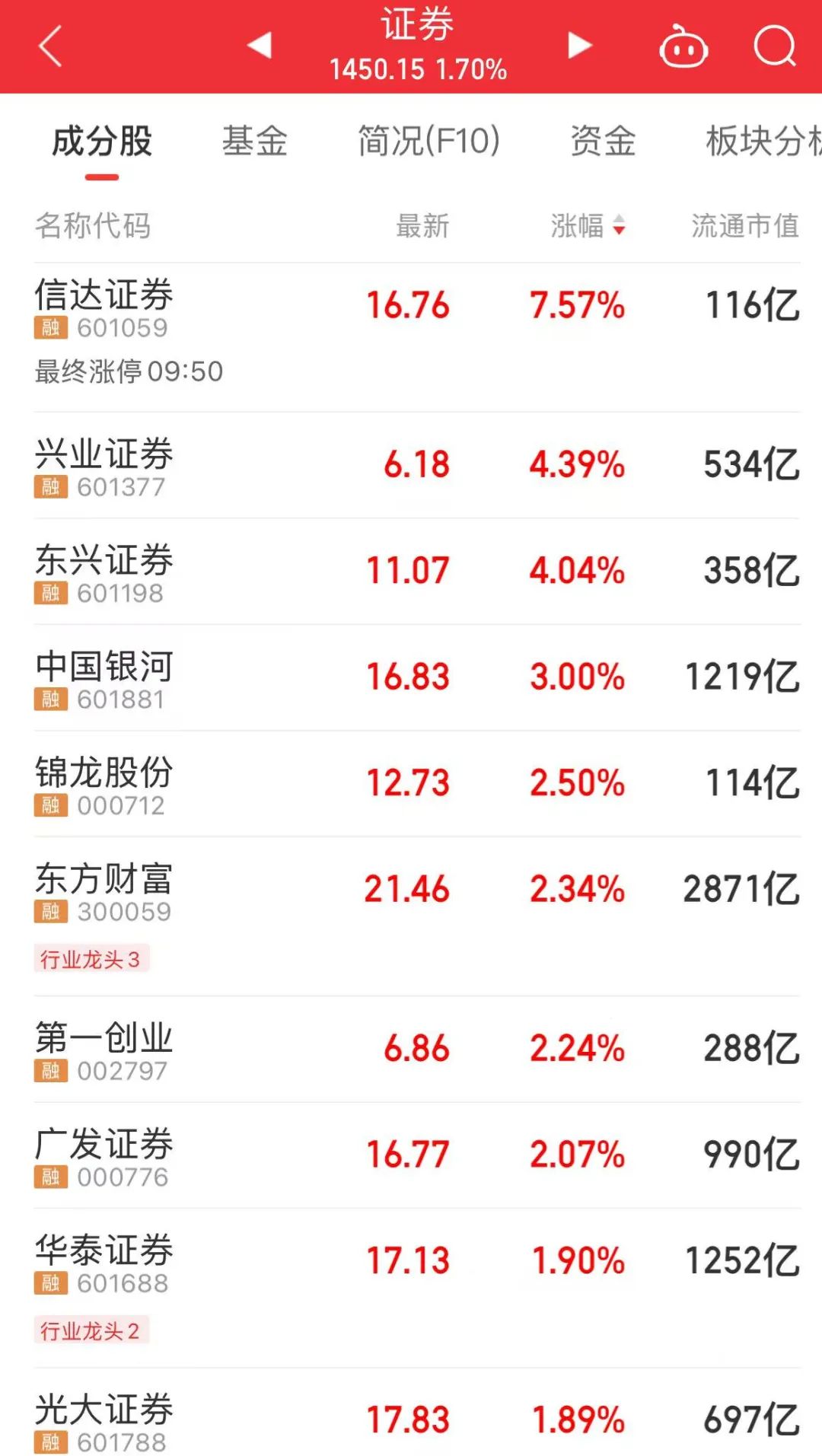 今天上午,券商板块上涨,早盘一度大幅冲高。信达证券(601059)涨超7%,盘中涨停;兴业证券、东兴证券等个股也大涨。