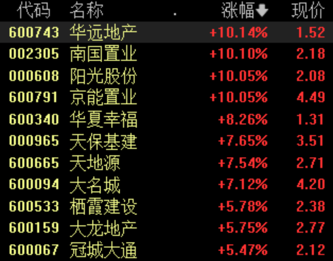 5月6日,地产股开盘表现强势,截至发稿,南国置业5连板,京能置业3连板,华远地产、阳光股份涨停,华夏幸福、大名城、大龙地产等涨幅居前。