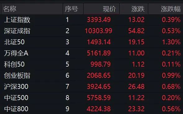 今日(5月21日)早盘,A股继续小幅上扬,北证50再创历史新高,上证指数则逼近3400点,科创50围绕1000点震荡,上证50、沪深300等均稳步走强。下跌个股远多于上涨个股,成交保持平稳。