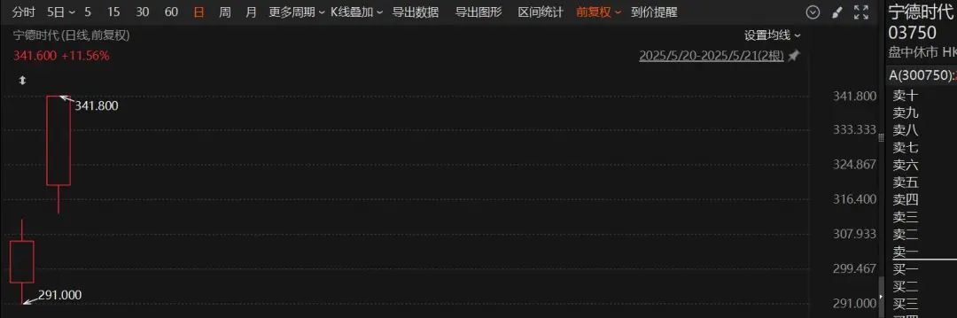 港股小幅上涨。截至午间收盘,恒生指数涨0.53%,恒生科技指数涨0.43%。宁德时代涨超11%。