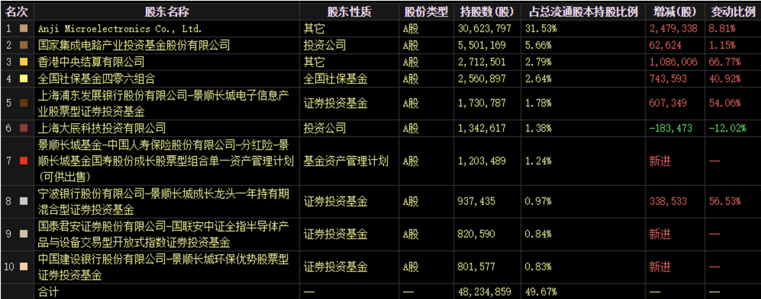 机构加仓安集科技明显。二季度,公司获社保基金406组合加仓,持股占流通比2.64%。