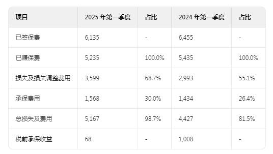 2025 年第一季度,已签保费较 2024 年下降 3.2 亿美元(5.0%),主要归因于财产保险业务量的减少。已赚保费较 2024 年第一季度下降 3.7%。