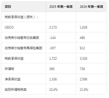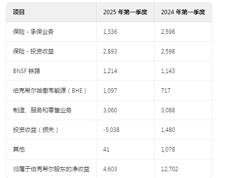 伯克希尔・哈撒韦公司及其合并子公司 2025 年和 2024 年第一季度的收益总结如下。收益均按税后计算。(除每股金额外,美元金额单位均为百万)