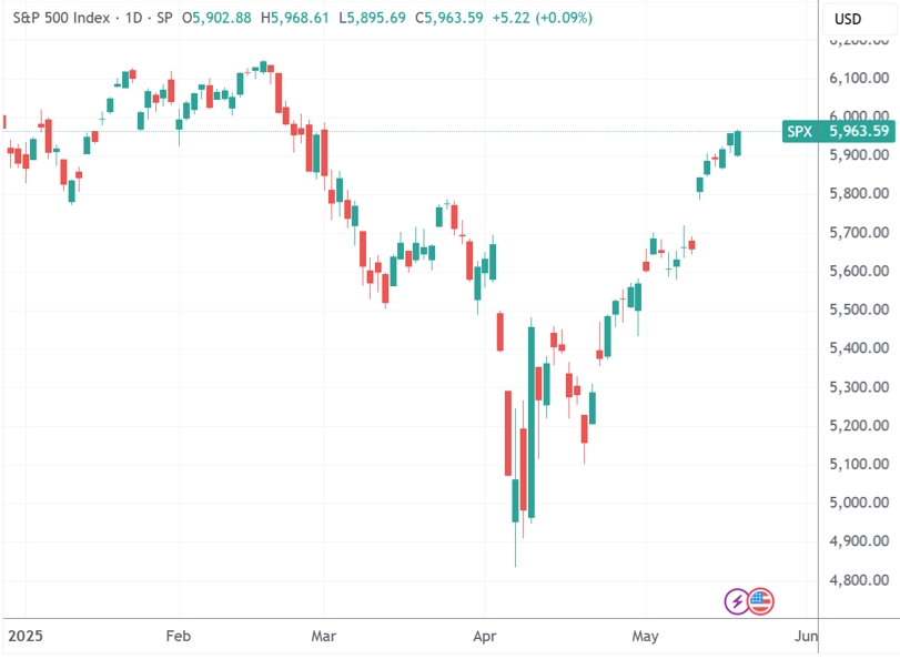 截至收盘,标普500指数涨0.09%,报5963.6点;纳斯达克综合指数涨0.02%,报19215.46点;道琼斯工业平均指数涨0.32%,报42792.07点。按照收盘价计算,标普500指数距离4月底部已经反弹17%,距离再创历史新高也只差3%。