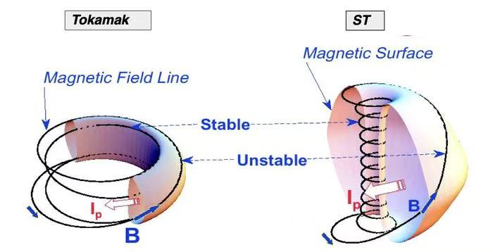 左为传统托克马克,右为球形环,图片源自普林斯顿等离子体物理实验室