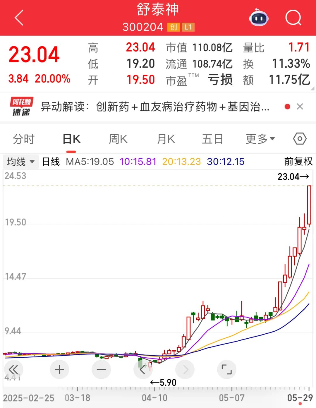 除了重组题材,近期创新药表现持续向好。早盘,舒泰神(300204)再度“20cm”涨停,短短8个交易日股价翻倍。