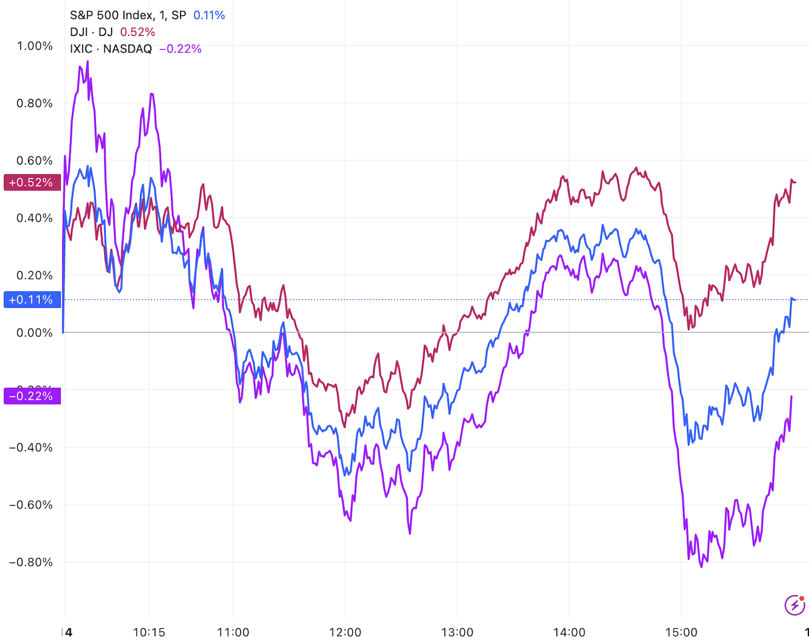(三大指数分钟线图,来源:TradingView)