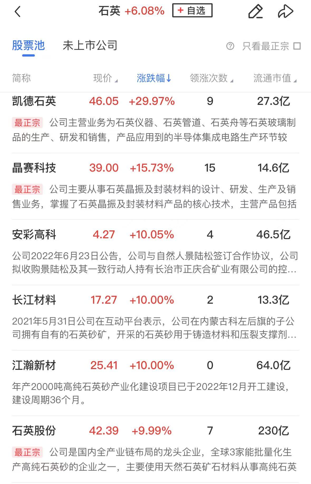 石英概念股再度走强,其中石英股份3连板,欧晶科技2连板,凯德石英、安彩高科、长江材料涨停,壹石通、晶赛科技、中旗新材、凯盛科技等跟涨。消息面上,4月10日,自然资源部发布的《新发现矿种公告》显示,我国在河南东秦岭地区、新疆阿勒泰地区新发现高纯石英矿。