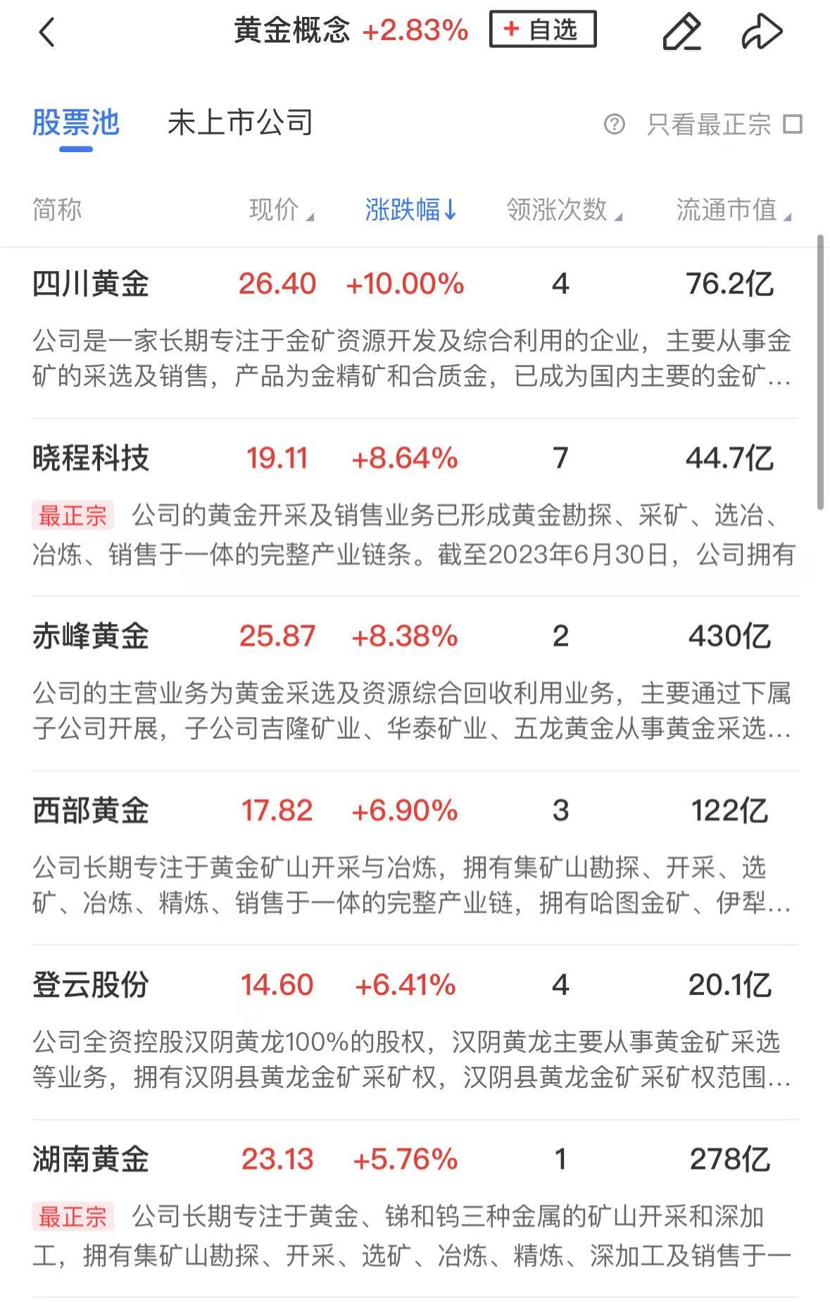 黄金股再度走强,四川黄金涨停,赤峰黄金、晓程科技、西部黄金涨幅居前。