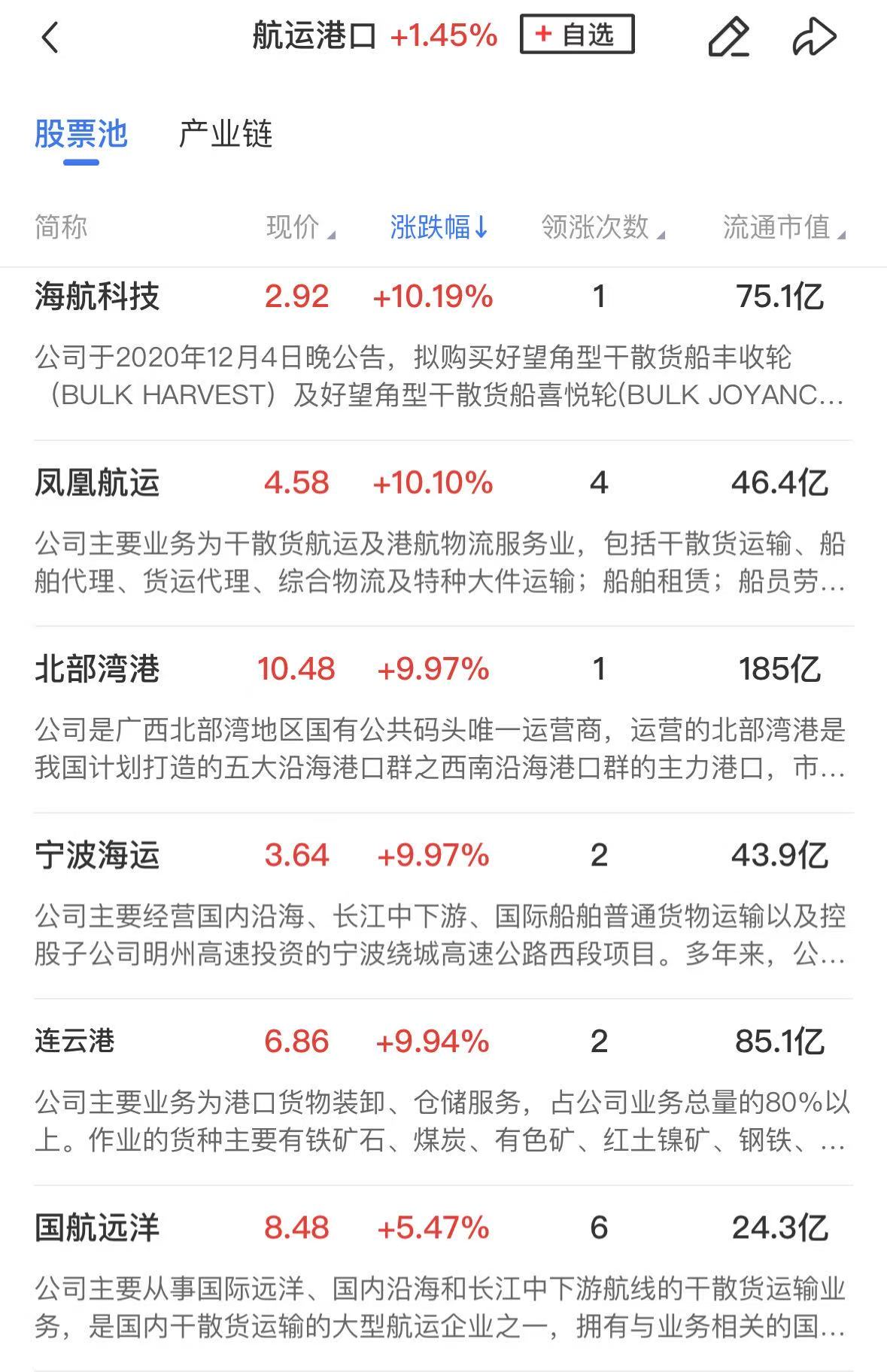 港口航运概念反复活跃,连云港6连板,海航科技、凤凰航运、北部港湾等个股涨停。