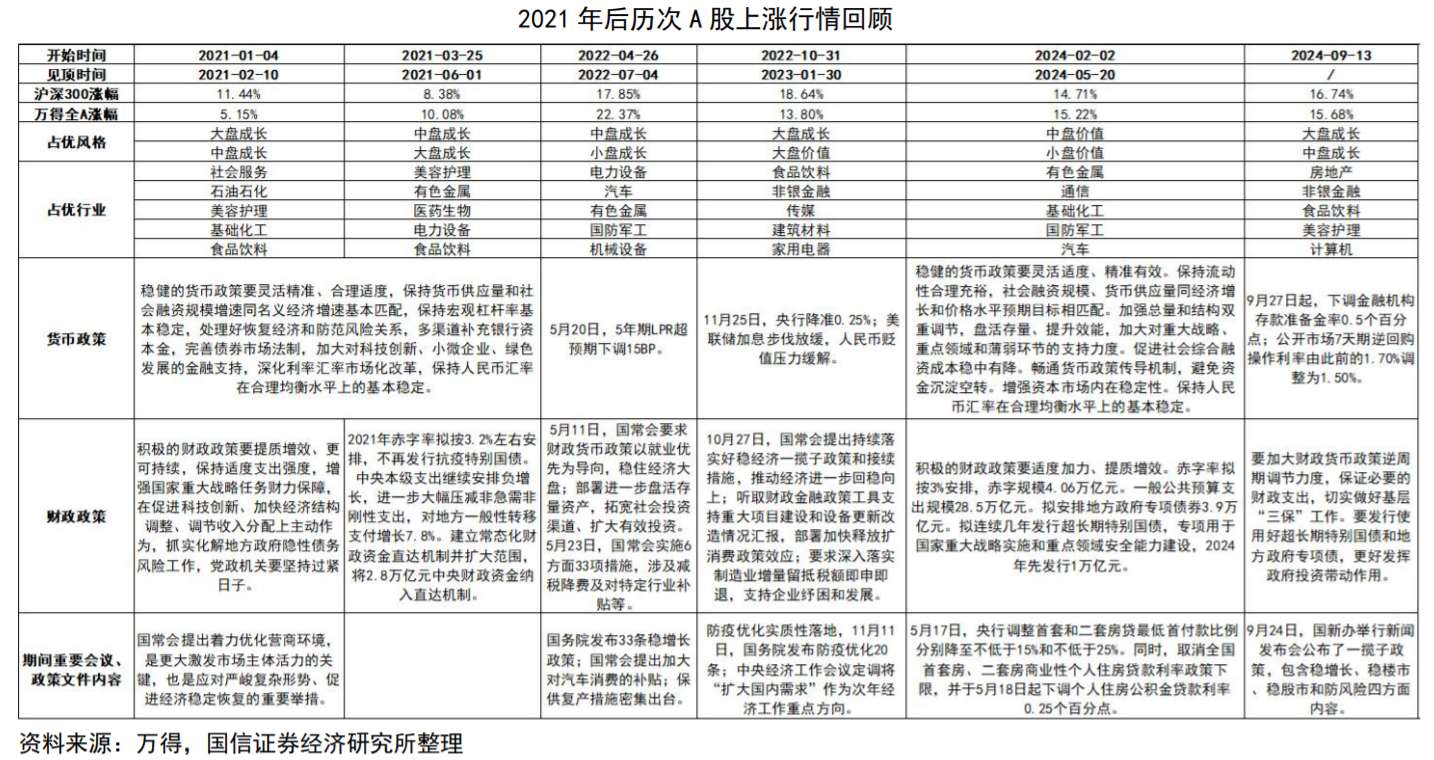 近年来货币政策维持宽松,在遵守财政纪律和政策预调微调的语境下具有可比参考价值。本节以沪深300指数为核心资产的基准,对2021年后沪深300指数短期涨幅大于8%的行情进行复盘,2021至今沪深300指数共计5段短期上涨行情。