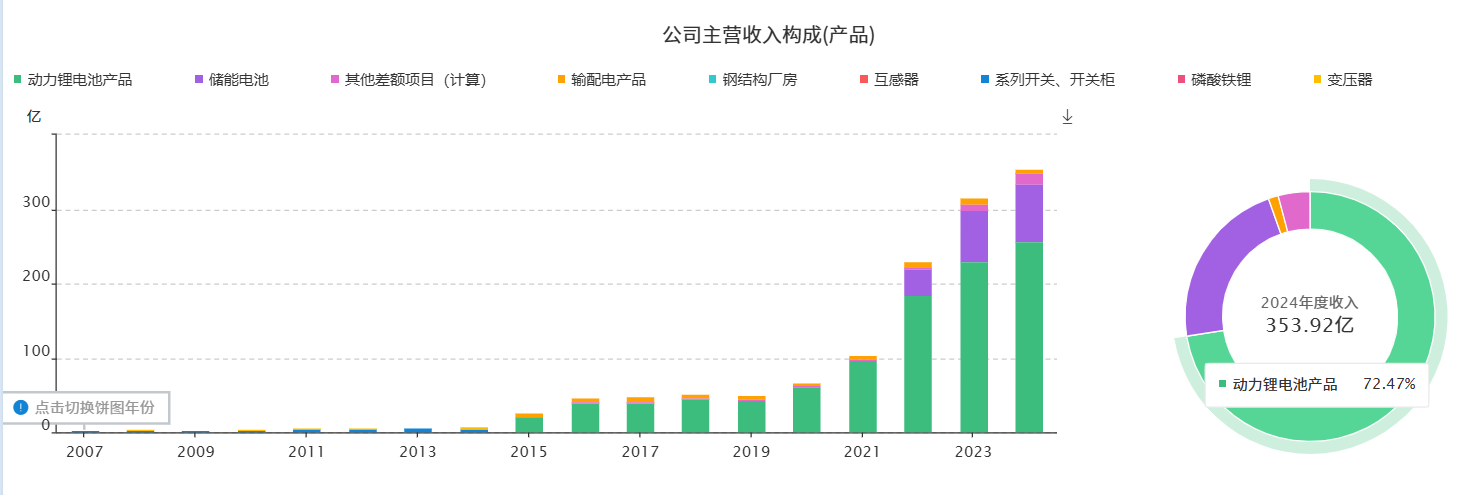 国轩高科成立于2006年,是国内最早从事车用锂离子动力电池自主研发、生产和销售的企业之一。2007年公司磷酸铁锂材料生产线投产运行,2020年,大众入股国轩高科,产品品控、客户结构均得到改善。目前,公司已形成了从电池材料端、制造端到产品端的完整产业链体系,拥有八大研发中心、全球十四大电池生产基地,并在德国、印度、美国、斯洛伐克等海外多国布局了电池生产基地。2020年5月,大众中国将对公司进行战略投资。2021年12月15日定增完成,大众中国成为公司第一大股东,占公司总股本的24.68%,并提名和选举了4名大众中国方人员为公司董事,包括2名非独立董事与2名独立董事。根据协议约定,大众中国承诺2024年或大众中国自行决定的更长期间内,将不可撤销地放弃其持有公司股份的表决权,以使大众中国表决权比例比创始股东方(国轩控股、李缜及其一致行动人李晨)的表决权比例低至少5pct。公司实控人仍为李缜。2024年,公司动力电池业务营收占比超过70%,公司全球动力锂电池装机量同比增长73.8%,市占率3.2%,排名第八;中国市场装机量同比增长48%,市占率4.59%,排名第四。储能业务方面,2024年实现营业收入78.32亿元,占总营业收入的22.13%,同比增长12.98%,储能电池出货量市占率6%。