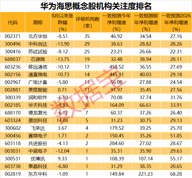 部分概念股未来成长性值得期待。其中,优博讯、赛微电子、润和软件、东方中科等机构一致预测今年、明年及2026年净利增速均超30%;北方华创、中瓷电子、移远通信等净利增速均超20%。