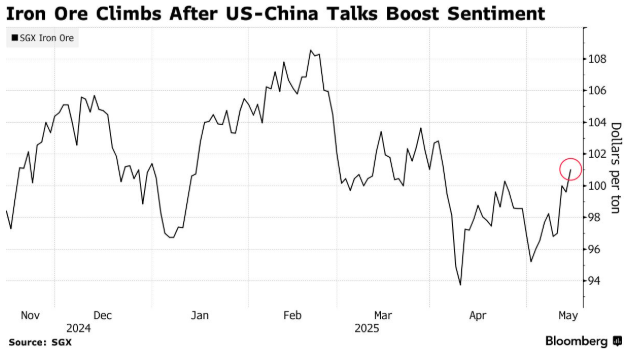 随着关税紧张局势缓解,铁矿石价格应声上涨,为饱受全球增长担忧冲击的金属市场注入乐观情绪。